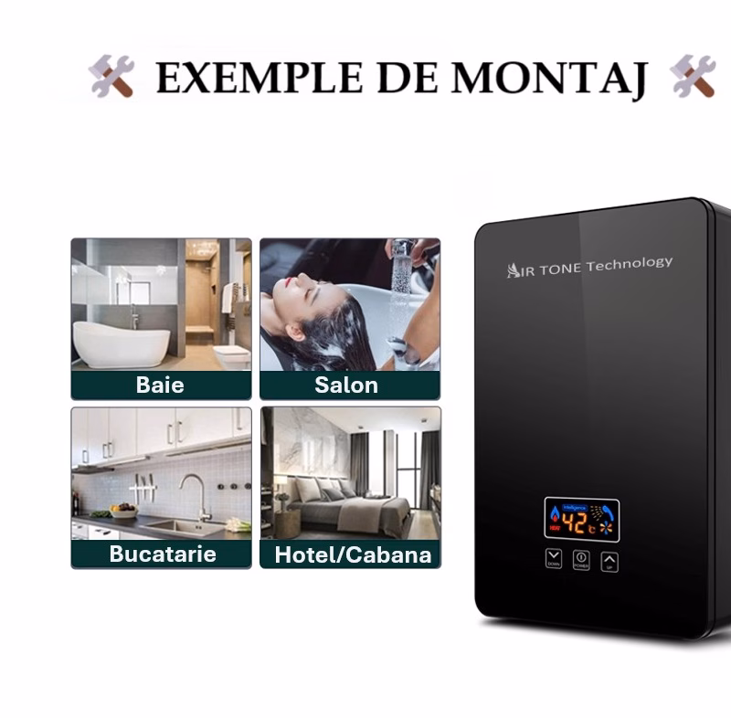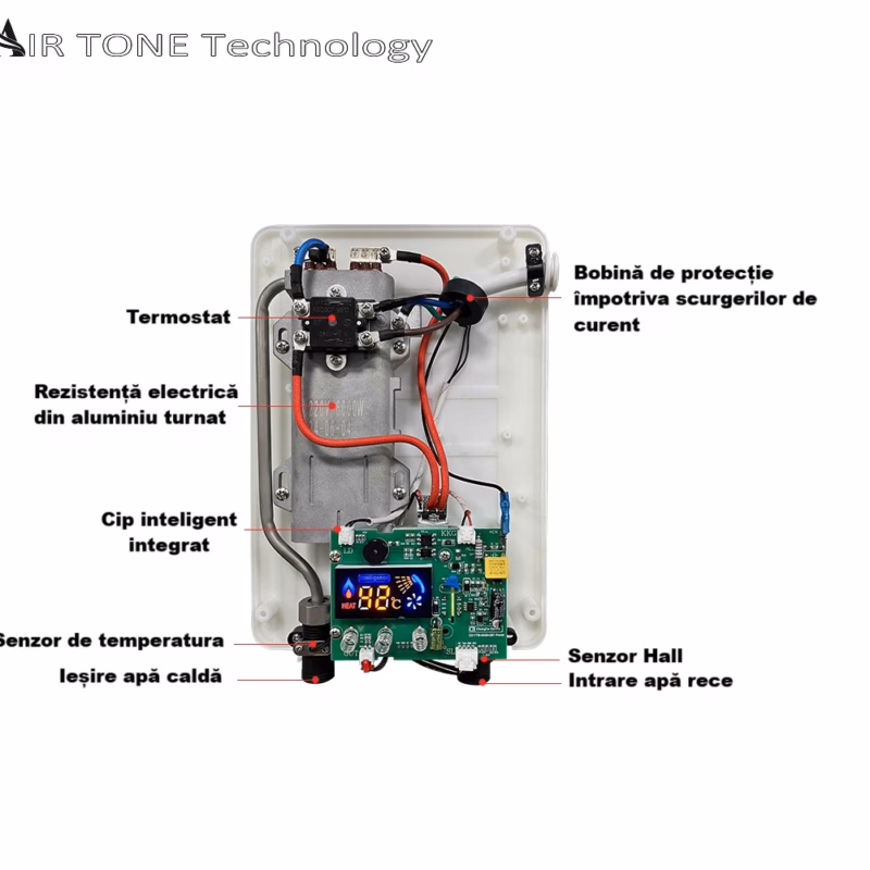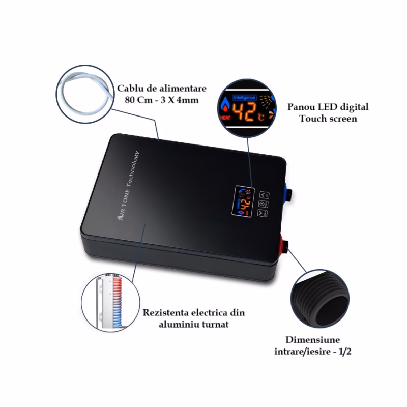 Eficiență 98,3% • IPX4 Instant apă caldă Încălzitor electric AirTONE cu display LCD, temperatură constantă 25–55°C