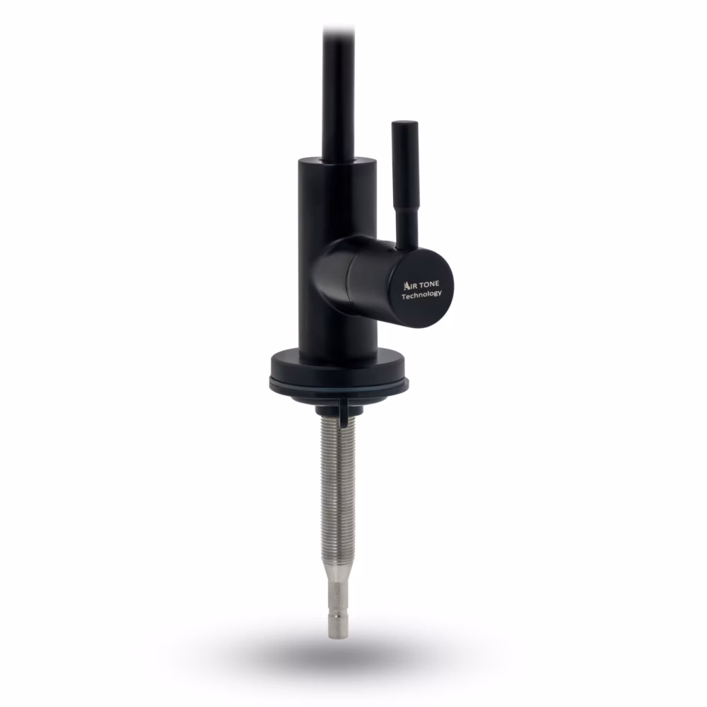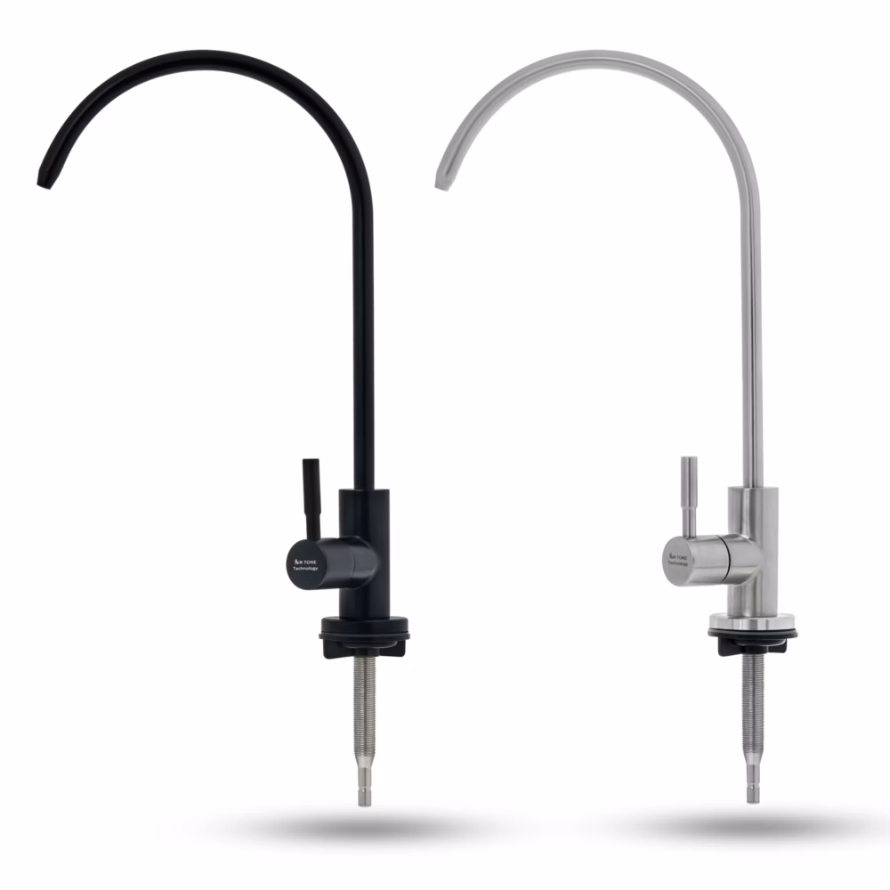 Baterie din inox pentru apă filtrată – cartuș ceramic și conectare rapidă 1/4” & 3/8”, rotire 360°, design modern. Compatibilă cu filtre și osmoză inversă. Instalare ușoară, finisaj Negru mat / Crom inox.