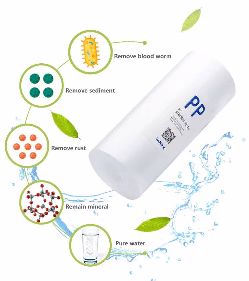 Notă: PP nu adsorbe clor/COV. Pentru gust/miros adaugă CTO; pentru ioni/metal selectează RFC; pentru claritate microbiologică folosește UF.