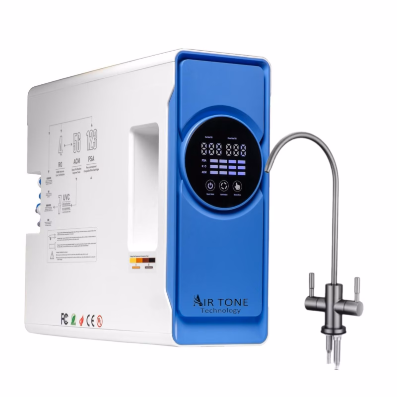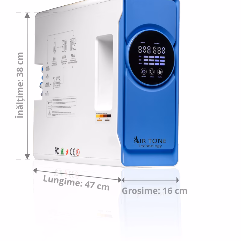 Filtru Apa cu Osmoza Inversa 1000GPD Direct Flow, Air Tone Technology, Membrana VONTRON, Sterilizare UV, 7 Stagii Filtrare, Fara Rezervor, Apa Pura Instant, Sistem Profesional Premium, Display LED, Alb-Albastru