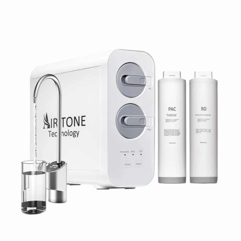 Filtru apa osmoza inversa direct flow Air Tone Technology 600GPD, Fara bazin (tankless), Sistem RO + PAC, display TDS, Raport 2:1 economie apa, Cartuse twist schimbare rapida, Purificator sub chiuveta, Culoare alb . Model 2026