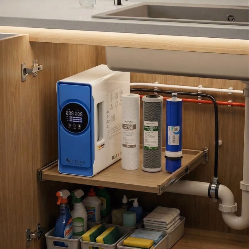 Descoperă performanța premium a filtrării apei cu sistemul de osmoză inversă Air Tone Technology®, creat pentru un stil de viață sănătos, modern și eficient.